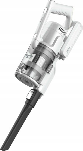 BUSH to odkurzacz ręczny, zasilany akumulatorowo. Posiada zbiornik na kurz o pojemności 0,65 L który w szybki i łatwy sposób daje się opróżnić. Czas pracy na jednym ładowaniu od 18 do 45 min w zależności od czyszczonej powierzchni. Ergonomiczna rączka ułatwia prowadzenie urządzenia.