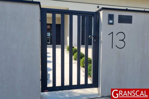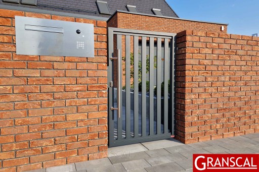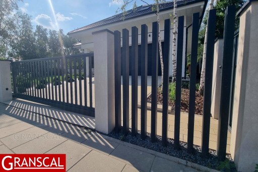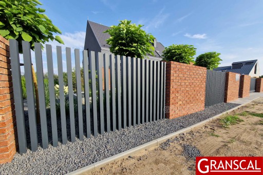 Nowoczesny charakter ogrodzenia wykonany z elementów o wymiarach 6 cm x 10 cm lub 10 cm x 10 cm