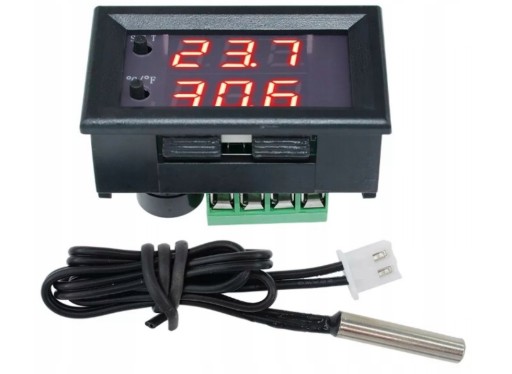 Posiada regulację temperatury co pozwala na kontrolę podłączonych urządzeń zewnętrznych. Wyświetlacz pokazuje temperaturę rzeczywistą i zaprogramowaną.