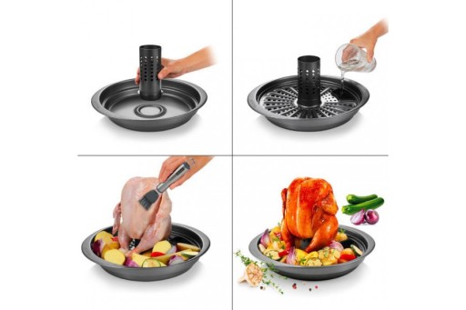 Doskonała do pieczenia kurczaka w całości, skrzydełek oraz udek z kurczaka także z dodatkami. Kurczak piecze się ze wszystkich stron równomiernie.