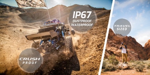Odporny na zalania, upadki, kurz i wstrząsy. Spełnia rygorystyczne normy IP 67 i militarną MIL-STD810G