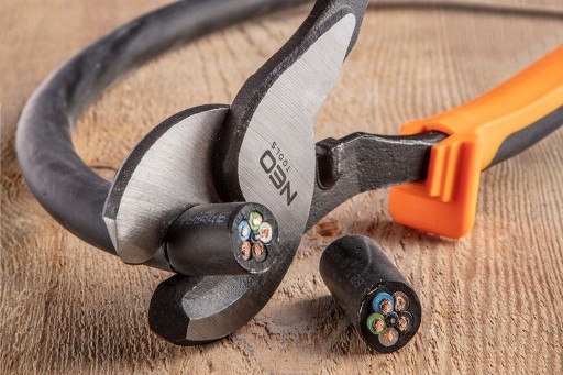 Obcinak do kabli miedzianych i aluminiowych NEO (nr ref. 01-515) o wymiarze 235 mm, wykonany zgodnie z normą DIN5749. Hartowane szczęki tną do maksymalnej średnicy 25 mm. Wysokogatunkowa stal chromowo-wanadowa zapewnia długoletnią wytrzymałość szczęk. Dwumateriałowa, ergonomiczna rękojeść podnosi komfort użytkowania. Jakość narzędzia potwierdzona certyfikatem TÜV i 25-letnią gwarancją producenta. Marka NEO spełnia oczekiwania profesjonalistów.
