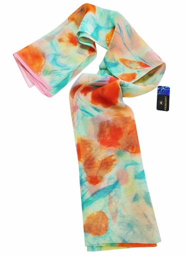 - Szal wykonany z ekologicznych tkanin. Bez sztucznych dodatków. Ręcznie wykańczany i sprawdzany. Znakomita jakość dzięki wysokiej klasy materiałom oraz kontroli jakości na każdym etapie wytwarzania. Tkanina 100% jedwab naturalny najwyższej jakości.