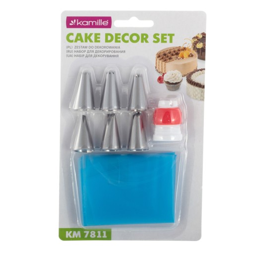 Końcówki do dekorowania są wykonane ze stali nierdzewnej, adapter - z wytrzymałego tworzywa.