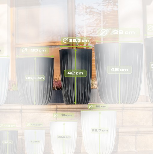 Powyższe zdjęcia są zdjęciami poglądowymi i przedstawiają przykładowe aranżacje linii, przedmiotem sprzedaży jest wyłącznie doniczka z wkładem o wymiarach