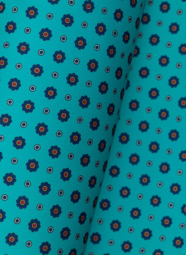 Poszetka z kolekcji Pako Lorente w kolorze morskim. Poszetka w całości pokryta jest drobnym, regularnym wzorem w granatowe kwiatki i kropki. Będzie idealnym dodatkiem do stroju formalnego lub półformalnego. Oryginalny kolor i wyrazisty, kontrastujący wzór sprawiają, że poszetka ożywi stylizację i doda jej wyrazistości.