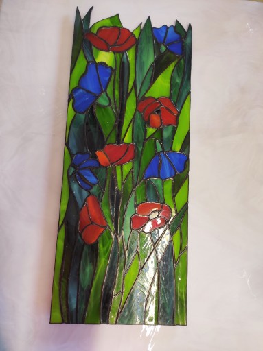Витражное панно «Луг» Маковое остекление витражная дверь