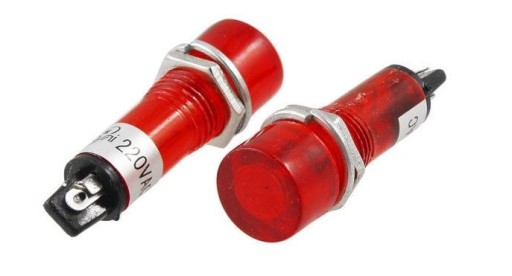 Kolor: klosz w kolorze -CZERWONYM w środku zarówka neonowa Napięcie zasilania: 230V AC Średnica: 12mm Średnica otworu montażowego: 9mm Typ połączenia: złącze do lutowania