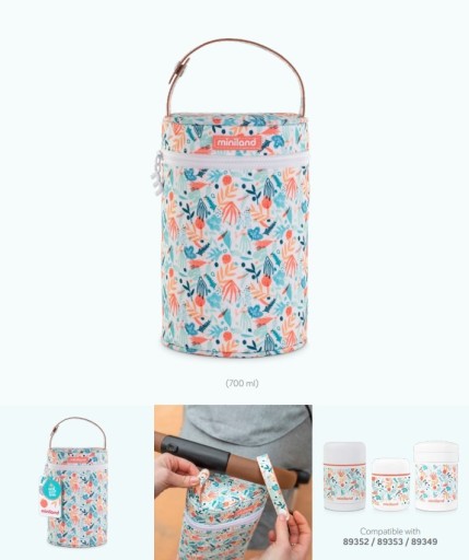 Ta torba izotermiczna firmy Miniland pomoże Ci chronić termos na posiłki stałe przed zmianami temperatury i wstrząsami, dzięki czemu pokarm dłużej można utrzymać w świeżości.