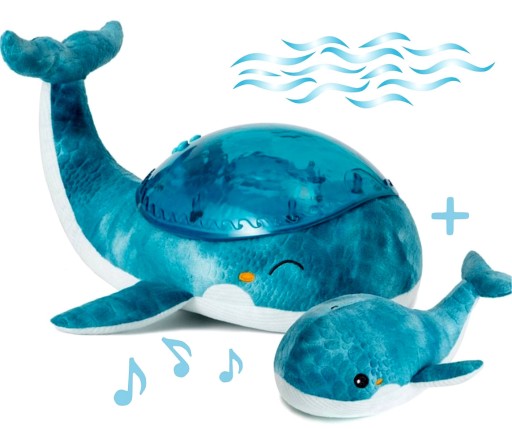 Przytulny i uroczy wieloryb wyciszy niemowlęta przed snem, a także pomorze uspokoić dzieci, które boją się ciemności. Pozwoli maluchowi na spokojne przygotowanie się do snu. Światło pojawiające się na ścianach i suficie oraz uspokajające dźwięki stworzą relaksującą atmosferę, która pomoże dziecku szybko zasnąć.