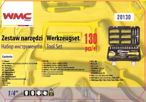 НАБОР ИНСТРУМЕНТОВ WMC, КЛЮЧИ, ОТВЕРТКИ, БИТЫ, 130 ПРЕДМЕТОВ