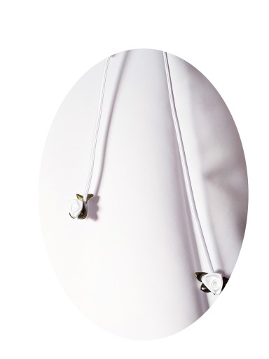 - Zdobienia - Lamówkowa tasiemka przepasająca z różyczkami (na życzenie doszyta na stałe). W dolnej części przepiękny połyskujący haft z cekinami.