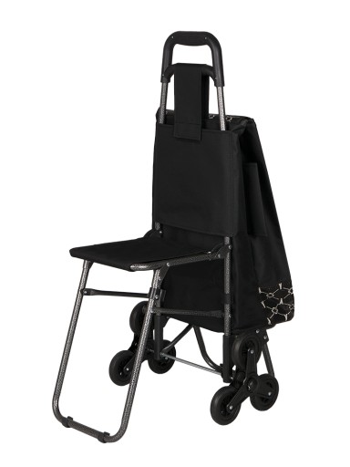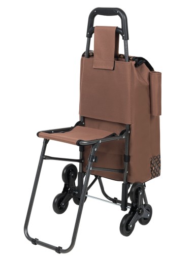 Wózki na zakupy z siedzeniem (absolutny hit) na DWÓCH POTRÓJNYCH kółkach piankowych o średnicy 10 cm (każde kółko na potrójnej metalowej osi). Idealne do prowadzenia nawet po nierównych powierzchniach oraz schodach. Super pomysł na prezent!