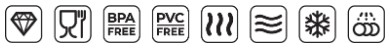 - Higieniczny materiał niezawierający BPA (Bisfenol A), który nie zatrzymuje plam ani nie przenika zapachami