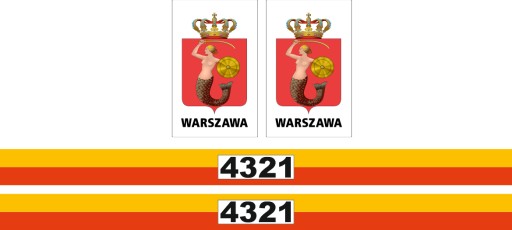 - 2 x pasek żółto czerwony (99x6cm) z numerem licencji (po zakupie w wiadomości należy podać numer licencji jaki ma być umieszczony na paskach)