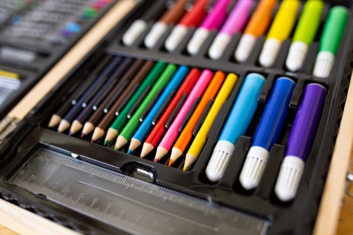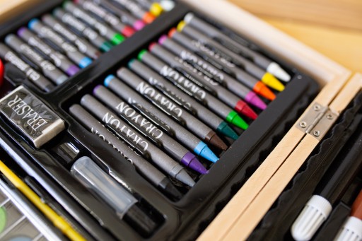 Spraw Dziecku niezwykły prezent w postaci drewnianej walizeczki wypełnionej barwnymi akcesoriami do rysowania i malowania.