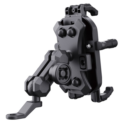 Element montażu do motocykla nie jest bezpośrednio połączony z uchwytem. Zamocowany jest na płycie, która przesuwa się na dwóch płozach oraz łagodzą jej ruch aż 4 niezależne amortyzatory.