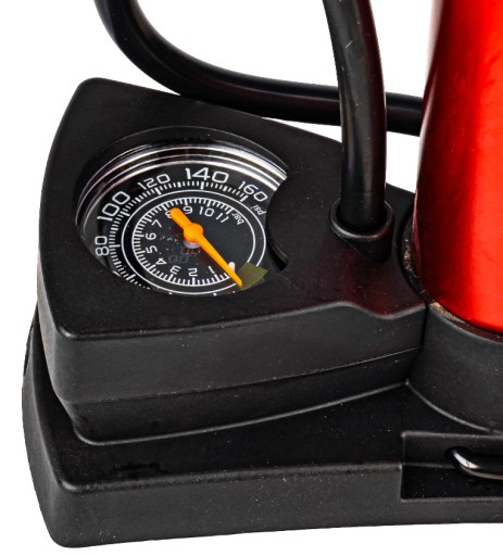 Pompka posiada wbudowany manometr wyskalowany aż do 11 BAR / 160 PSI, co pozwala na bieżące kontrolowanie i uzyskanie pożądanego ciśnienia!