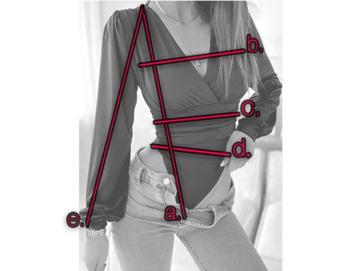 - b. Szerokość pod pachami: 48 cm x2 (max. 59 cm x2)
