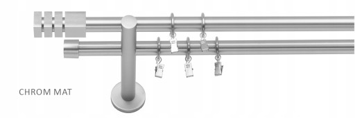 KARNISZ PODWÓJNY 220 CM 19+19 MM METALOWY NOWOCZESNY DUŻY WYBÓR ZAKOŃCZEŃ
