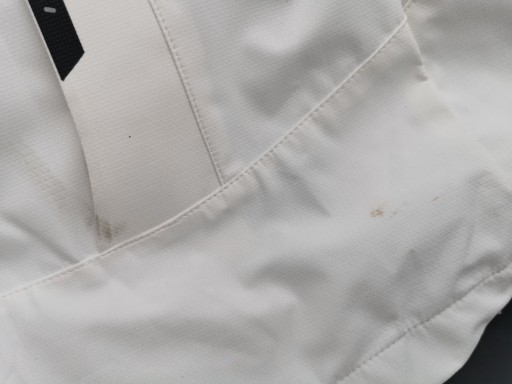- Jest maleńkie zabrudzenie przy kieszeni i z boku na dole, pokazane na zdjęciach.