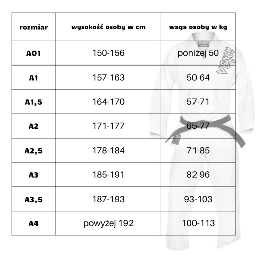 Dane techniczne kimona:
