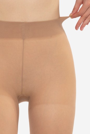 - Rajstopy o grubości 20 DEN posiadają szeroki, bezuciskowy ściągacz, gwarantujący doskonałe równomierne ułożenie rajstopy bez efektu rolowania się w talii.