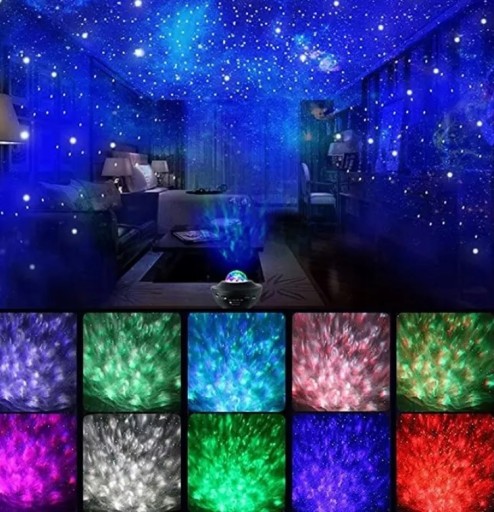 Urządzenie zostało wyposażone w 4 podstawowe kolory (niebieski, czerwony, zielony, biały), czerwonym i zielonym światłem laserowym oraz różnymi trybami migania. Dzięki możliwości wyboru masz szansę stworzyć własną falę oceaniczną lub mgławicę gwiaździstą w zależności od nastroju.