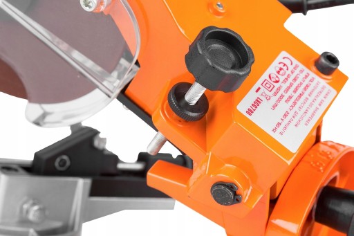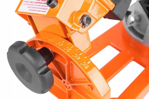 Wyposażenie urządzenia w płynną regulację napięcia łańcucha oraz zastosowanie regulacji kąta ostrzenia z precyzyjną podziałką pozwala na naostrzenie każdego ogniwa w sposób powtarzalny bez potrzeby jego nadmiernego napinania. Ostrzałka wyposażona została w uchylane i obracane imadło z regulacją kąta ostrzenia (kąt obrotu 35st), oraz ogranicznik głębokości szlifowania, które umożliwiają naostrzenie łańcucha w bardzo precyzyjny sposób. Urządzenie jest proste w obsłudze, niezwykle intuicyjne. Wszystkie pokrętła do regulacji posiadają odpowiednią skalę oraz podziałkę.