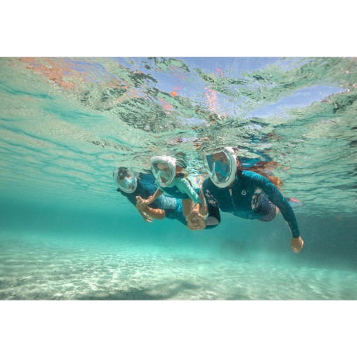 Pełnotwarzowa maska do snorkelingu, umożliwia komfortowe WIDZENIE i ODDYCHANIE pod wodą jak na lądzie.
