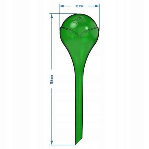- Proste w użyciu - wypełnij kulę wodą, zrób dziurkę w ziemi i umieść w niej dozownik. Od tej chwili woda samoczynnie będzie się stopniowo uwalniać ze zbiornika.