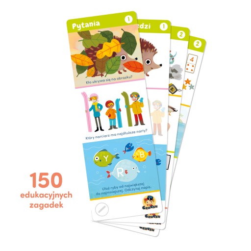 Dzieci uwielbiają zagadki! W małej formatem a wielkiej treścią edukacyjnej książeczce znajdziecie 150 rozwijających zabaw w postaci pytań i odpowiedzi. Pięknie zilustrowane, pełne humoru zagadki poruszają tematy bliskie starszym przedszkolakom. Spięta śrubką 100-stronicowa książeczka z łatwością zmieści się w plecaku czy kieszeni w aucie, dlatego warto ją mieć przy sobie. Zagadki CzuCzu świetnie sprawdzają się wszędzie tam, gdzie są ciekawi świata odkrywcy. Opis;książeczka na śrubceliczba stron: 100wymiary pudełka: 6,5 x 20,5 x 2,3 cmilustracje i formę dostosowano do wieku dzieckazabawa rozwija koncentrację, logiczne myślenie i uczy o świecie Przepis na dobrą zabawę z Zagadkami CzuCzu dla dzieci w wieku 5-6 lat Obejrzyjcie razem książeczkę. Pytania mają różny poziom trudności, dzięki czemu dziecko może sprawdzić już zdobytą wiedzę i w pełen śmiechu sposób dowiedzieć się czegoś nowego. Przeczytaj zagadkę (starszak może próbować zrobić to samodzielnie!), poczekaj na odpowiedź i sprawdźcie rozwiązanie na następnej stronie. Możecie wymyślać własne zagadki inspirowane ilustracjami, tworzyć własne ilustracje, wymyślać kolejne pytania - dajcie się ponieść wyobraźni. Niech Zagadki zainspirują dziecko do pogłębiania zainteresowań i dalszych odkryć!