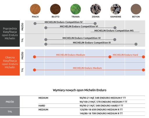Całkowicie nowa zaawansowana opona Enduro o średniej twardości przeznaczona do jazdy w piachu, błocie i kamieniach. Nowa seria Michelin Enduro, to szeroka gama opon o różnych twardościach przeznaczona do każdego rodzaju terenu.