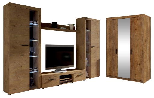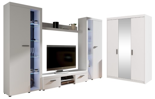MEBLOŚCIANKA + SZAFA TRZYDRZWIOWA Z LUSTREM RUMI XL DO SALONU POKOJU