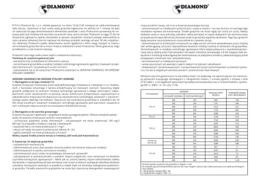 Wszystkie grzejniki panelowe DIAMOND posiadają 10-letnią gwarancję na materiał i działanie pod warunkiem instalacji przez wykwalifikowanego instalatora, zgodnie z wymaganiami technicznymi.