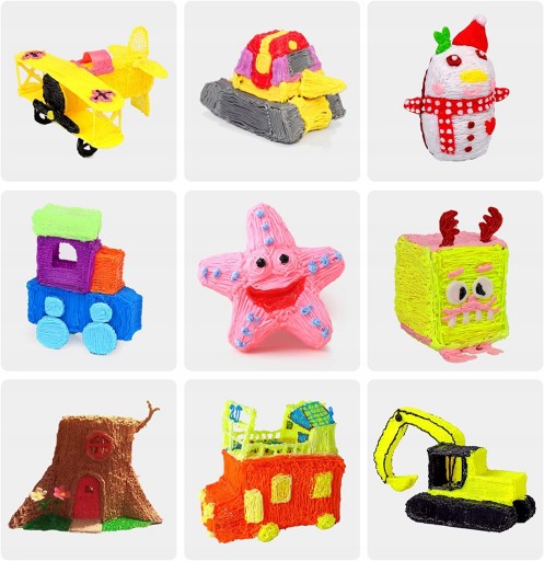 Filamenty w tym zestawie są różnokolorowe, cechują się dużą wytrzymałością co pozwala na przygotowywanie trwałych modeli i projektów przy jego użyciu.