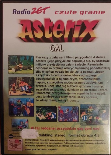 Płyta VCD ASTERIX GAL Rzymianie porywają Panoramixa, by zmusić go do sporządzenia napoju dającego nadprzyrodzoną siłę. Druid robi miksturę, ale ma ona nieoczekiwane właściwości. Płyta nieużywana Płyta nieużywana