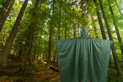 ✅ 3w1 - peleryna przeciwdeszczowa, którą można wykorzystać do zbudowania prowizorycznego namiotu lub jako wodoodponą matę biwakową.