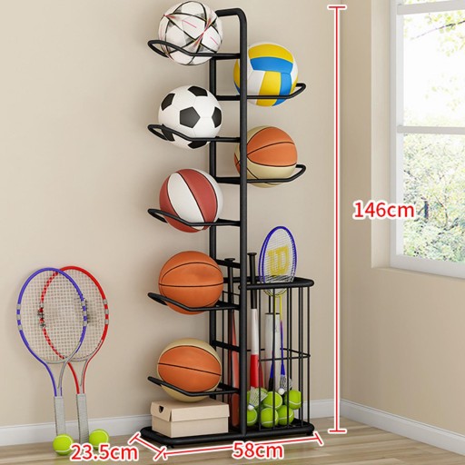 Oszczędność miejsca: Pionowy stojak do przechowywania koszykówki nie zajmie dużo miejsca i można go łatwo przenosić. Idealny do przestrzeni lub obszarów o dużym natężeniu ruchu, jest i funkcjonalny, aby utrzymać porządek i wydajność w domu.