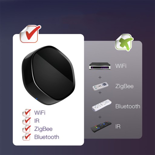 3. Bezprzewodowy pilot zdalnego sterowania: kompatybilny z aplikacją Smart Life zapewnia bezprzewodowe zdalne sterowanie szeroką gamą urządzeń domowych, w tym urządzeniami ZigBee i Bluetooth, a także tradycyjnymi domowymi urządzeniami na podczerwień, zawsze i wszędzie. Nie ma potrzeby osobnego sterowania Bluetooth i ZigBee w dwóch różnych interfejsach; Lokalna scena i powiązania mogą być również realizowane, gdy sieć jest rozłączona.