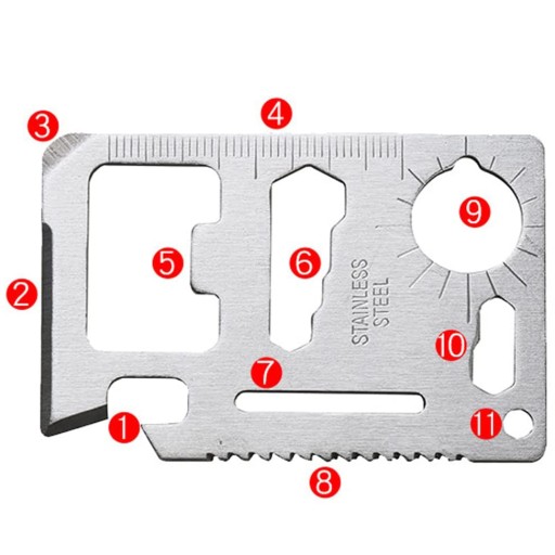 jest uniwersalnym narzędziem wielkości karty kredytowej. Dzięki niewielkim rozmiarom zawsze możesz ją mieć przy sobie nr: w portfelu, w plecaku jak i bezpośrednio w kieszeni. Lekka, wielofinkcyjna, wykonana ze stali nierdzewnej. Sprawdzi się idealnie w nieoczekiwanych sytuacji awaryjnych.