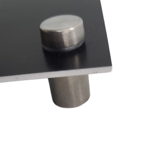 można zastosować do tablic wykonanych z laminatu grawerskiego, szkła, plexi czy aluminium. Dystanse w prosty sposób mocowane są do ściany, a dzięki wyposażeniu w silikonowe podkładki idealnie przylegają do powierzchni i nie powodują tarcia.