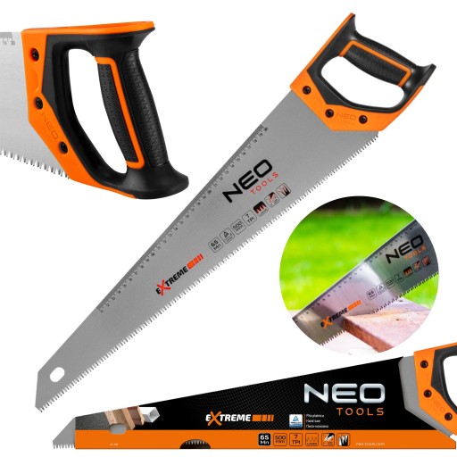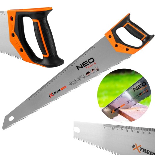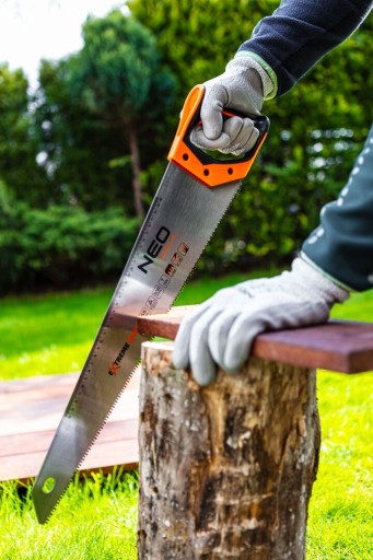 Piła płatnica 500 mm, 41-141, NEO przeznaczona do cięcia różnego rodzaju materiałów. Narzędzie ma ostry brzeszczot wykonany ze stali hartowanej indukcyjnie. Również zęby zostały zahartowane indukcyjnie. Dodatkową ich cechą jest ostrzenie w 3 płaszczyznach (3D), co daje im bardzo dużą ostrość. To wszystko sprawia, że ta piła ręczna jest uniwersalnym narzędziem do cięcia wielu elementów budowlanych. Pozwala ciąć pod różnymi kątami.
