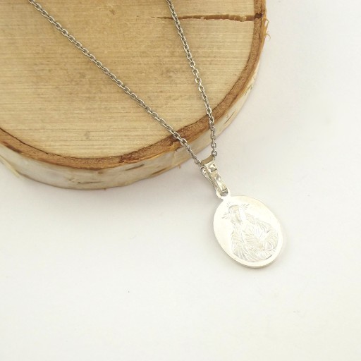 Medalik Srebrny z łańcuszkiem 925 na Prezent Chrzest Komunię Maria Madonna