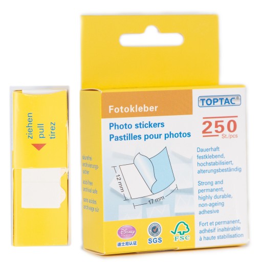 Użycie 2 przylepców do 1 zdjęcia jest to optymalna ilość aby zdjęcie z FotoBudki pewnie trzymało się po wklejeniu.