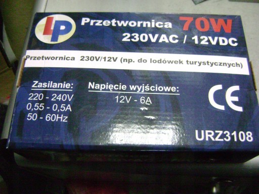 Zasilacz do lodówki 230V/12V, 6-7A, 70W.