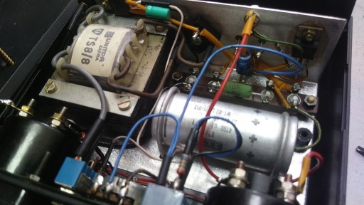 Zasilacz robiony , wewnątrz trafo TS8/8 ( daje ok. 6V , 1,2A Unitra Zatra ) _ LM7805 , LM 317 , tranzystor mocy w To-3 .