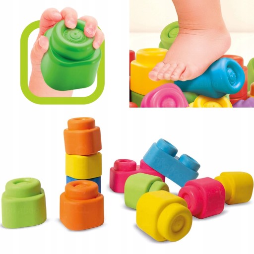 - Miękkie klocki bez obaw można układać, chwytać, rzucać, a nawet gryźć, ponieważ są absolutnie bezpieczne dla zdrowia dziecka, nie posiadają ostrych krawędzi , BPA i ftalanów.
