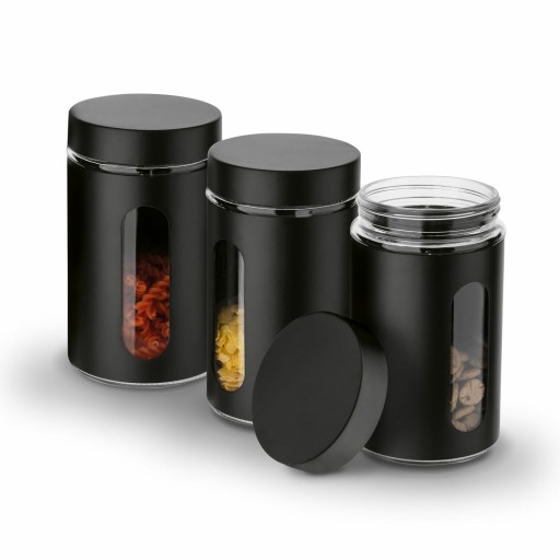 Zestaw 3 pojemników kuchennych Tadar Prato 1 l wykonany jest ze szkła. Każdy z nich ma stalową obudowę malowaną proszkowo na kolor czarny. Wykorzystasz je do produktów sypkich i suchych, czyli m.in. do kaszy, makaronu, cukru, mąki lub płatków owsianych. Co więcej, uporządkujesz i lepiej zorganizujesz zapasy w kuchni. Zabezpieczysz też zawartość (np. kawę i herbatę) przed zanieczyszczeniem, wilgocią i zwietrzeniem. Nie otwierając ich, upewnisz się, co jest w środku i jak dużo jeszcze zostało. Na czas uzupełnisz zawartość, by najpotrzebniejsze składniki mogły być zawsze pod ręką. W praktyczny sposób pokreślisz również stylowe wyposażenie domowej kuchni.
