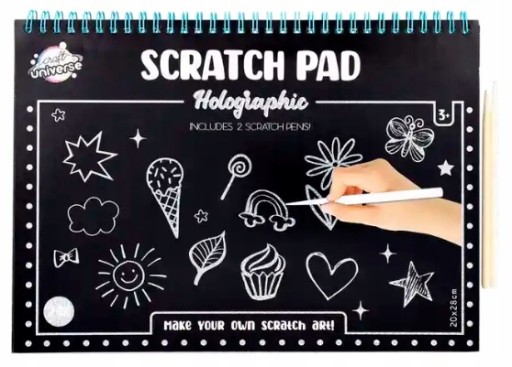 - 24 czarne kartki, po których zdrapaniu widać pastelowe kolory
